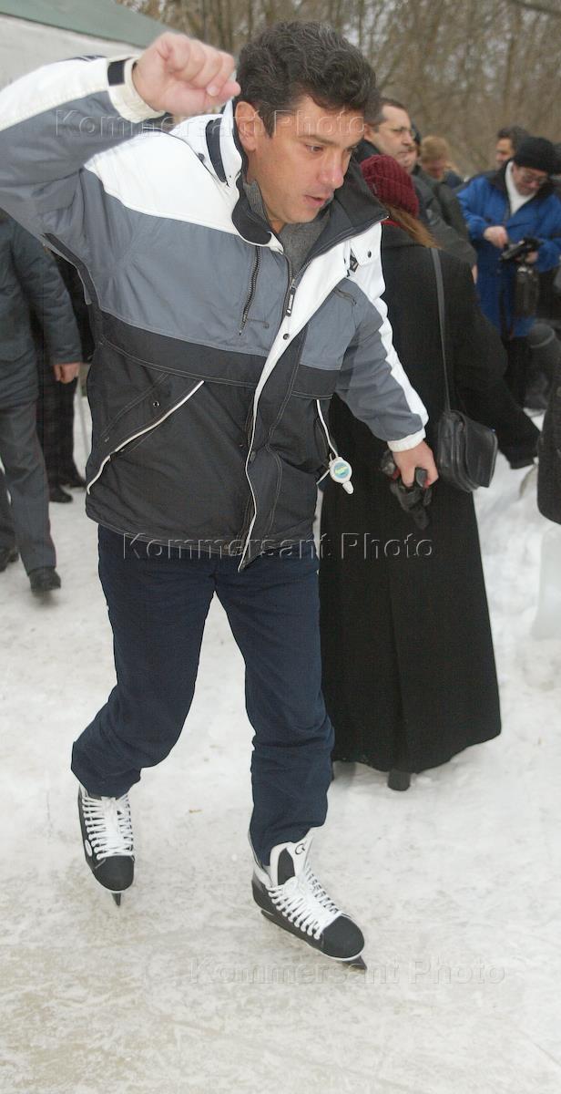 Лидер партии "Союз правых сил" Борис Немцов на катке в Серебряном бору.