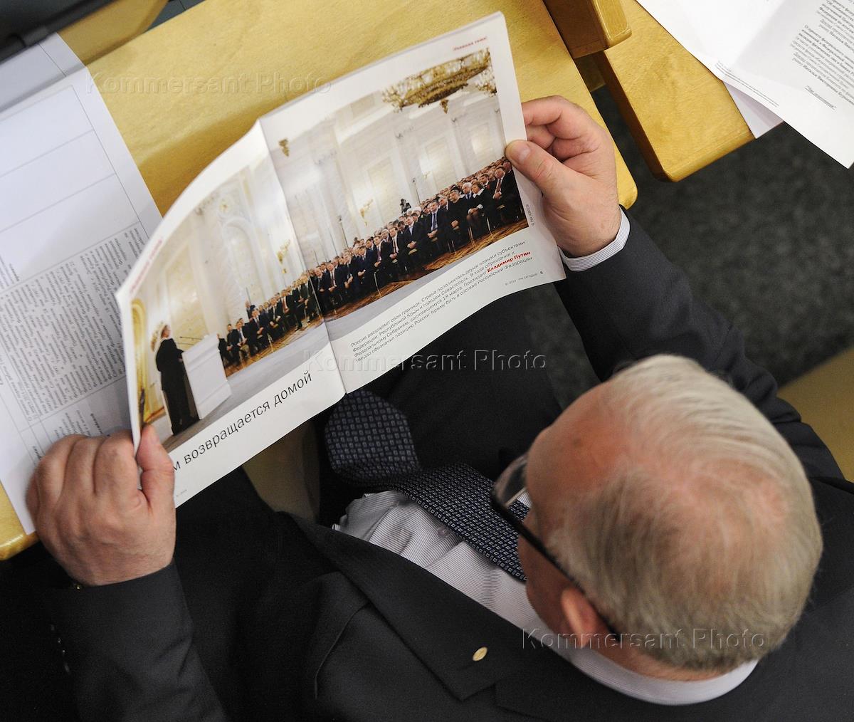 Слева направо: заместитель председателя комитета Государственной думы (ГД) России по конституционному законодательству и государственному строительству Дмитрий Вяткин, заместитель председателя Государственной думы (ГД) России, член комитета ГД России по безопасности и противодействию коррупции Владимир Васильев, член комитета Государственной Думы России по международным делам Александр Карелин на заседании Госдумы России.