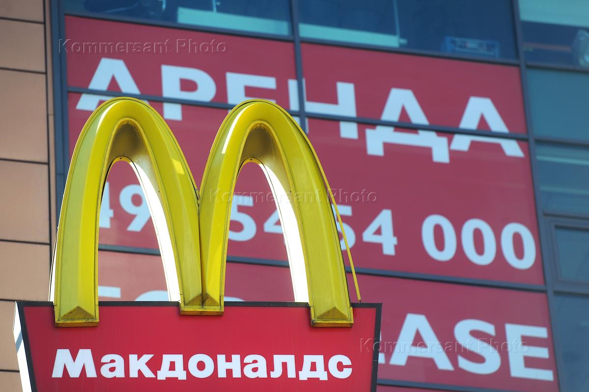 Office building in the reflection of advertising credits from the bank "Russian Standard".