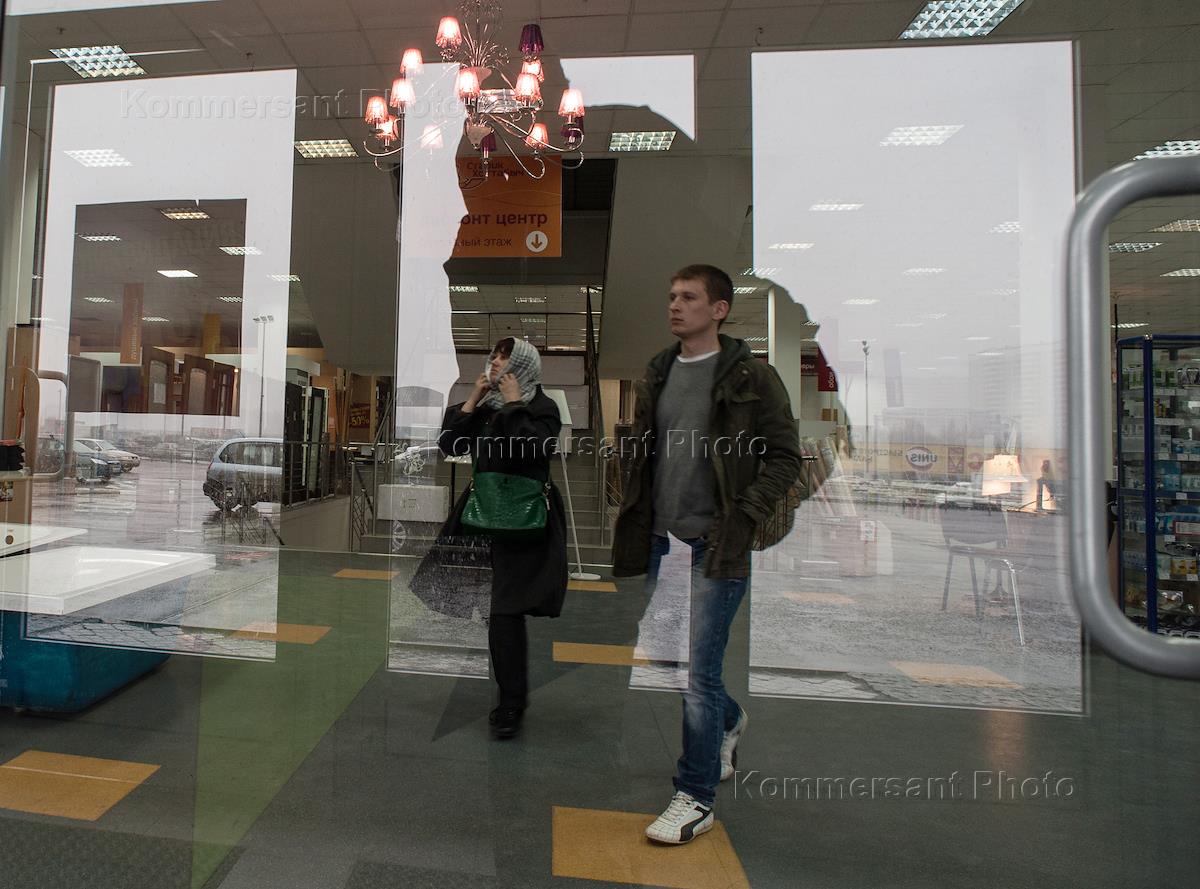 Buyers in the last store "Hottabych" in the outlet center "Brendsiti" on MKAD.
