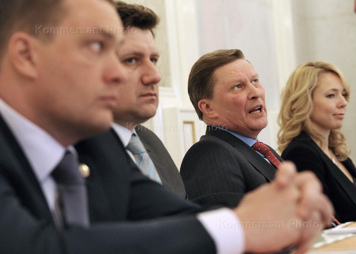 From left to right: General Director of basketball club CSKA Andrei Vatutin, General Director of VTB United League Andrey Shirokov, head of the Russian presidential administration Sergei Ivanov, Deputy General Director of VTB United League Ilona Korstin on the presentation of the budget basketball clubs at the Kremlin.