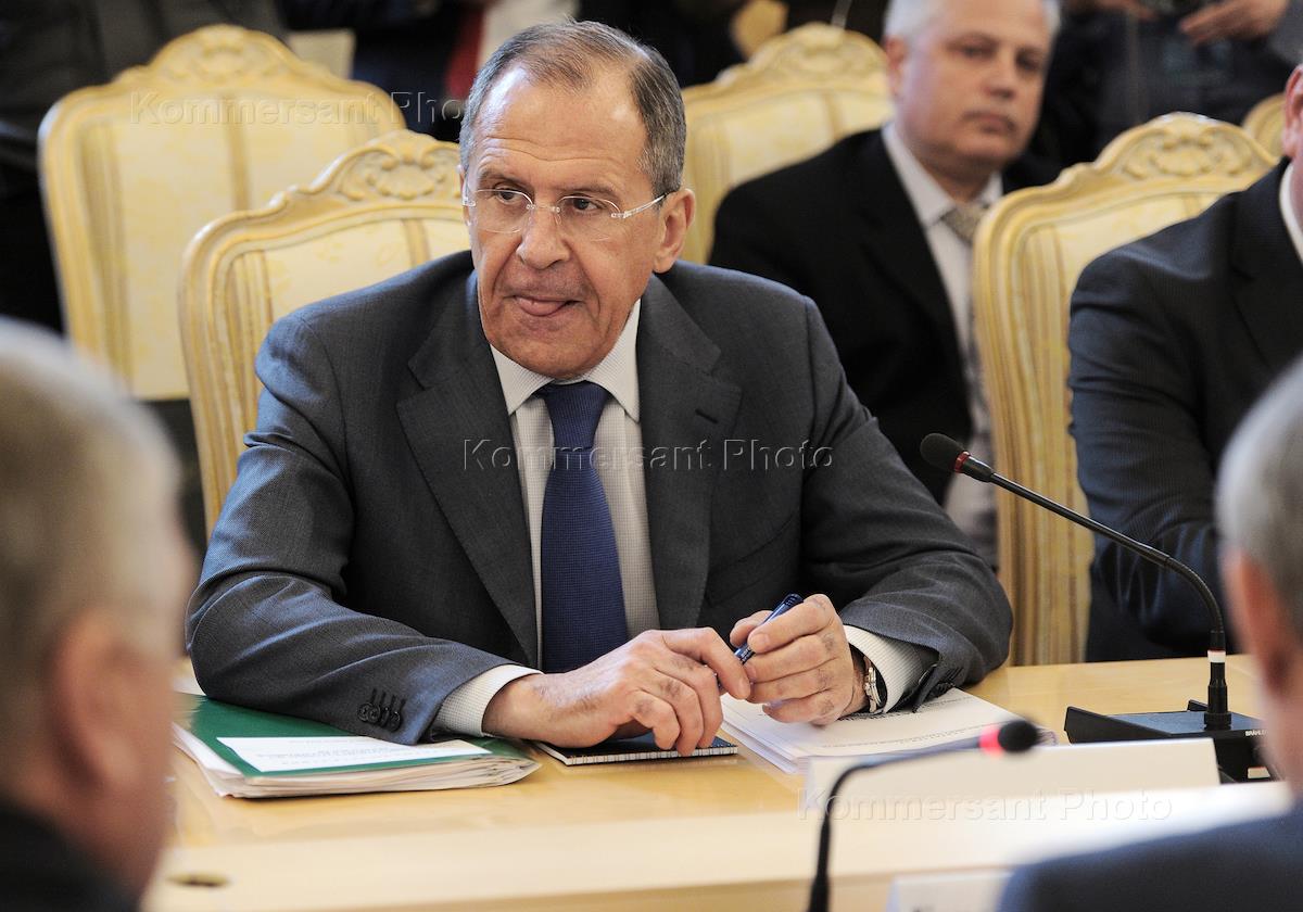 Министр иностранных дел России Сергей Лавров (слева) на заседании Совета министров иностранных дел государств-членов Организации Договора о коллективной безопасности в Доме приемов МИД России.
