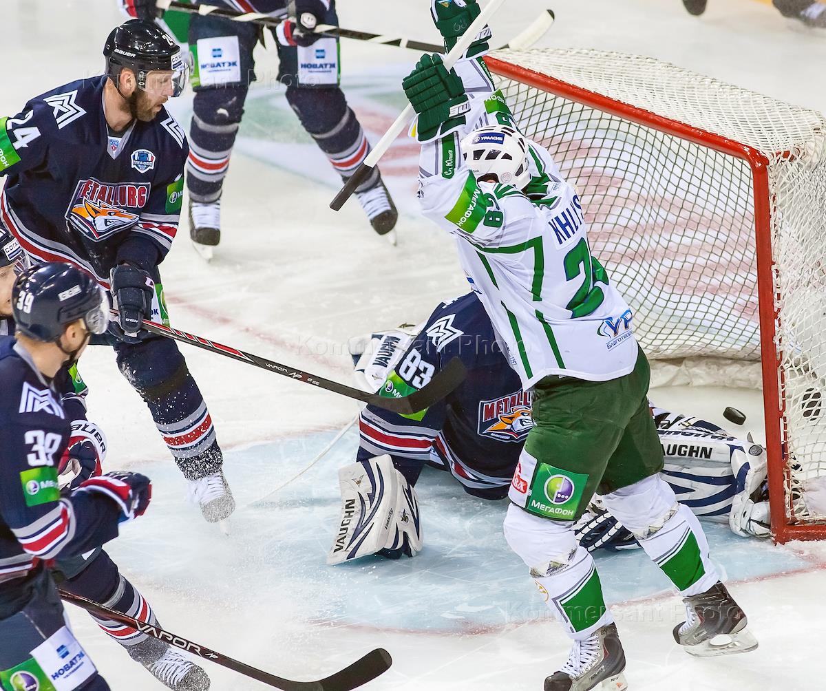 Континентальная хоккейная лига. Восточная конференция. Плей-офф. Матч между командами "Металлург" (Магнитогорск) и "Салават Юлаев" (Уфа) прошел на Ледовой арене "Металлург".