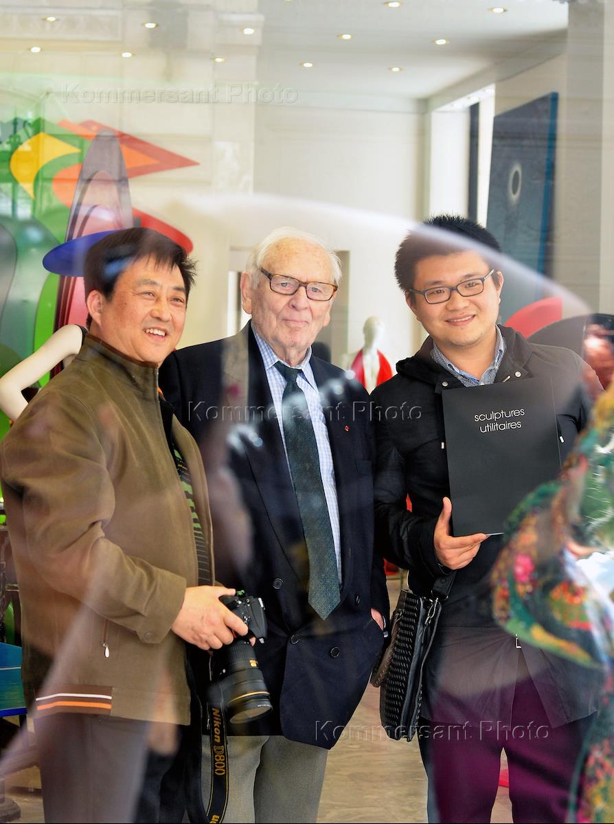 Модельер Пьер Карден в бутике Pierre Cardin на улице Фобур-Сент-Оноре (Rue du Faubourg Saint-Honoré).