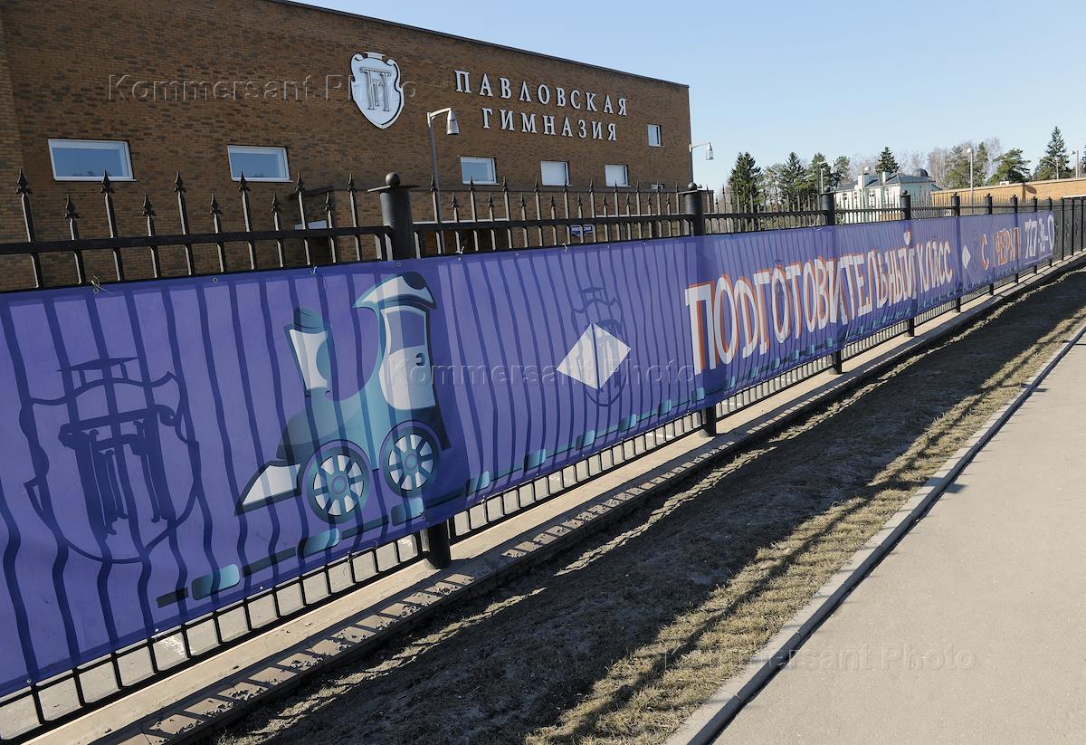 Павловская гимназия в деревне Веледниково Истринского районна Московской области. Учащиеся во время перемены.