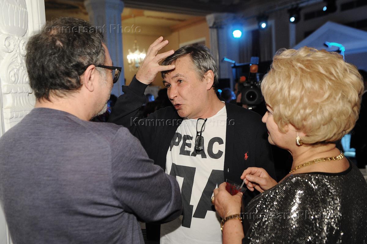 Слева направо: музыкант Евгений Маркулис, моэт Андрей Орлов (Орлуша) и президент Санкт-Петербургского общественного фонда Анатолия Собчака Людмила Нарусова на пионерских чтениях журнала "Русский пионер" в Royal Hall Центрального Московского ипподрома.