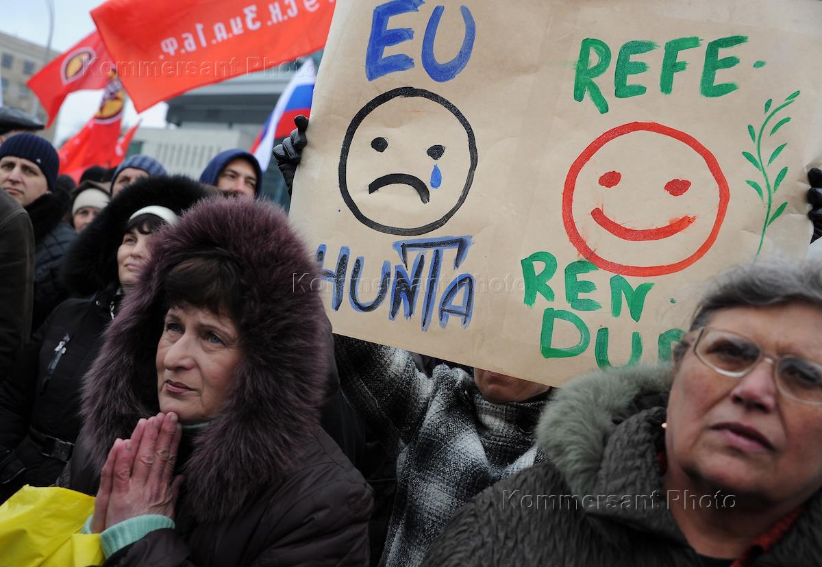 Политическая ситуация в Харькове. Участники акции в поддержку проведения референдума. Акция прошла на площади Свободы.