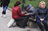 Жанровая фотография. Уличный хиромант предсказывает судьбу женщине на улице города Харькова.