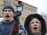Политическая ситуация в Харькове. Участники акции в поддержку проведения референдума. Акция прошла на площади Свободы. Около 50 бойцов спецподразделения явились в главное управление МВД, выражая протест против увольнения руководителя харьковского отряда "Беркута".