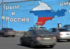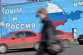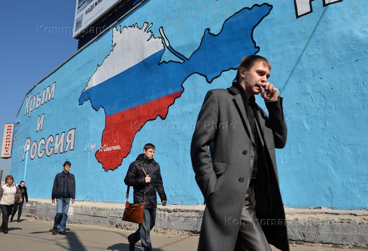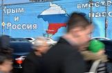 Виды Москвы. Плакаты в поддержку Крыма на Таганской площади.