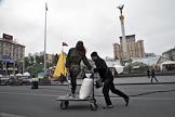 Политическая ситуация в Киеве. Перевозят продукты для активистов, живущих в палатках на майдане Незалежности (площади Независимости).