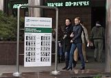 Политическая ситуация в Киеве. Информационная стойка пункта обмена валюты Сбербанка России.