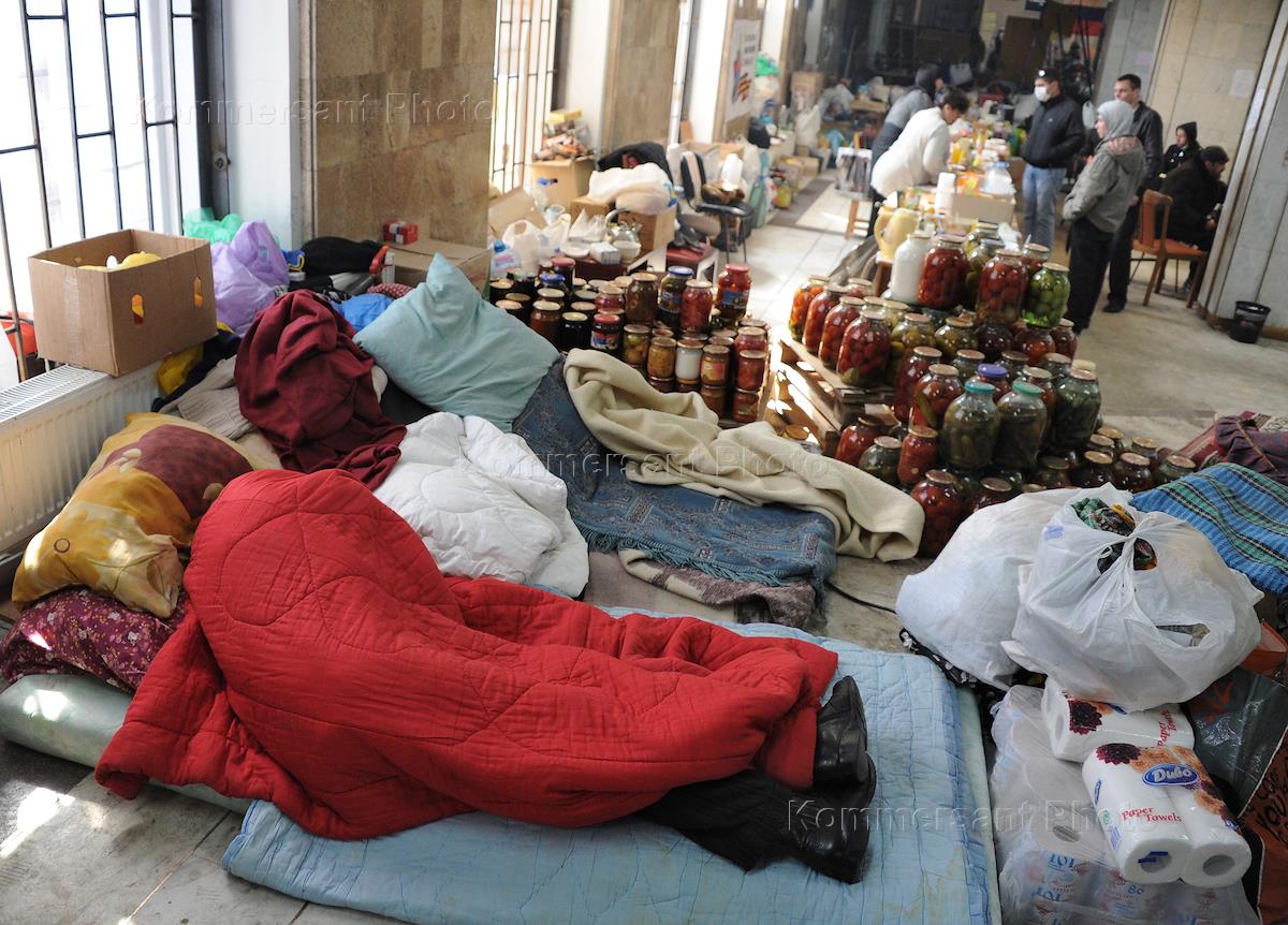 Политическая ситуация в Донецке. Вещи активистов федерализации Украины в здании Донецкой облгосадминистрации.