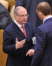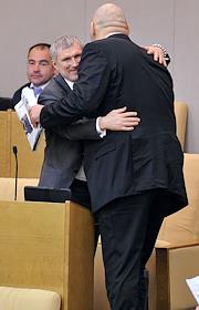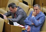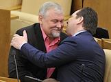 Председатель комитета Государственной думы России по вопросам собственности Сергей Гаврилов (слева) на пленарном заседании Госдумы.