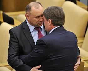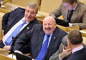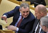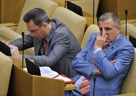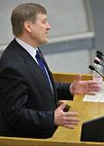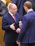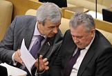 Председатель комитета Государственной думы России по вопросам собственности Сергей Гаврилов (слева) на пленарном заседании Госдумы.