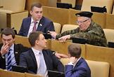 Член комитета Государственной думы России по труду, социальной политике и делам ветеранов Михаил Тарасенко (в центре) на заседании Госдумы.