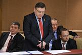 Председатель Комитета Государственной Дума России по гражданскому, уголовному, арбитражному и процессуальному законодательству Павел Крашенинников (слева) и лидер Либерально-демократической партии России (ЛДПР), член комитета Государственной думы России по обороне Владимир Жириновский (в центре) на заседании Госдумы.
