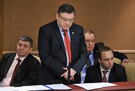 Заместитель председателя комиссии Государственной думы России по правовому обеспечению развития организаций оборонно-промышленного комплекса России, мэр Новосибирска Анатолий Локоть на заседании Госдумы.