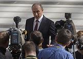 Президент России Владимир Путин (в центре) после проведения "Прямой линии".