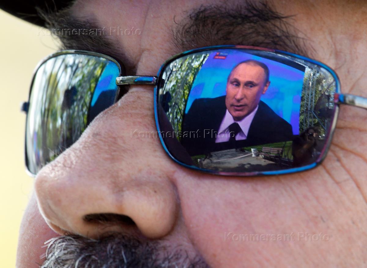 Жительница Севастопрля на набережной во время трансляции "Прямой линии с президентом России Владимиром Путиным".