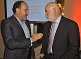 Журналист Андрей Васильев (слева) и совладелец группы "Ренова", президент фонда "Сколково" Виктор Вексельберг (справа) на праздновании Дня рождения журнала Forbes в ресторане "Метрополь".