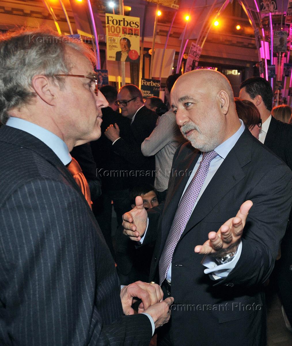 Владелец KR Properties Александр Клячин (слева) и совладелец группы "Ренова", президент фонда "Сколково" Виктор Вексельберг (справа) на праздновании Дня рождения журнала Forbes в ресторане "Метрополь".