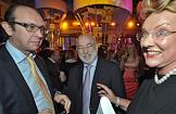 Слева направо: журналистка Ольга Романова, бизнесмен Алексей Козлов и посол Германии в России Рюдигер фон Фрич на праздновании Дня рождения журнала Forbes в ресторане "Метрополь".