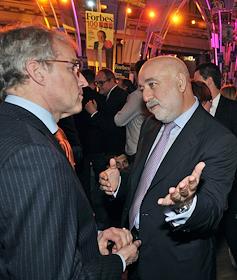 Журналист Андрей Васильев (слева) и совладелец группы "Ренова", президент фонда "Сколково" Виктор Вексельберг (справа) на праздновании Дня рождения журнала Forbes в ресторане "Метрополь".