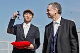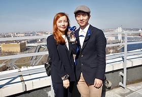 Шестикратный олимпийский чемпион Виктор Ан (справа) с супругой Нари (слева) получили ключи от квартиры в небоскребе "Князь Александр Невский»"от компании Росстройинвест.