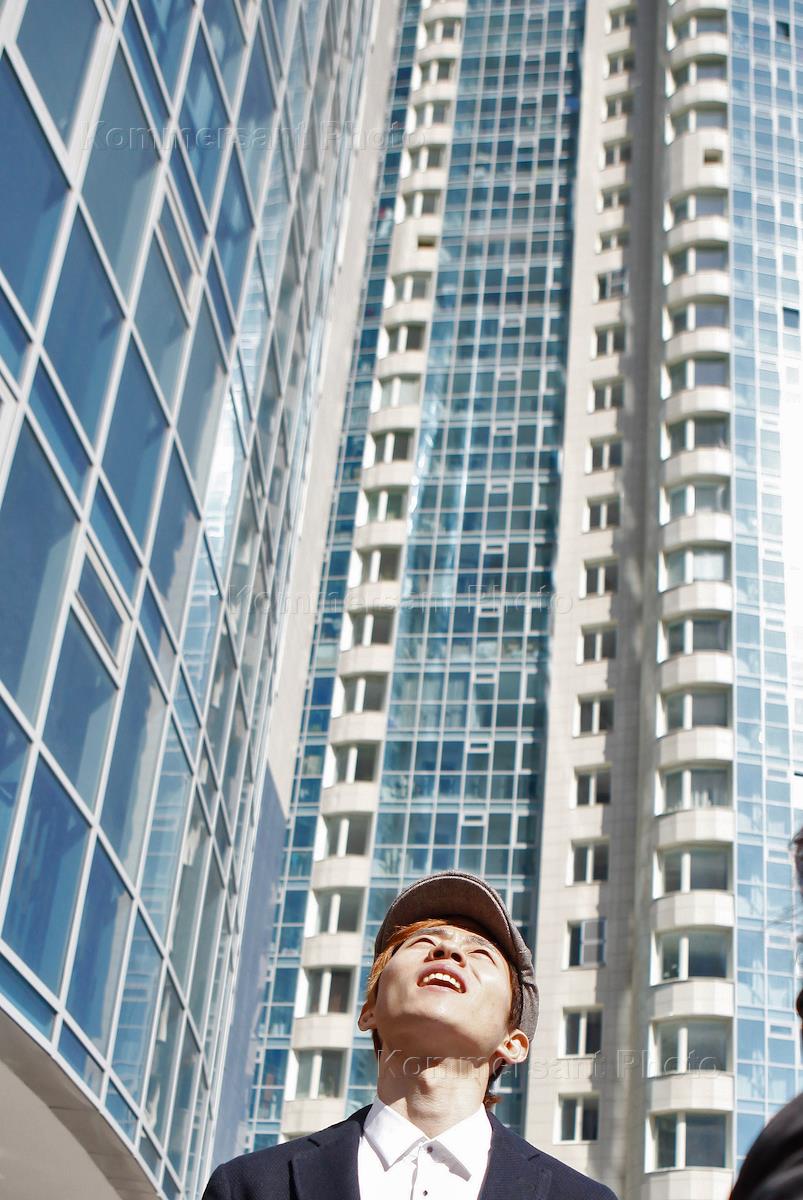 Шестикратный олимпийский чемпион России Виктор Ан у небоскреба "Князь Александр Невский", где ему вручили ключи от квартиры от компании "Росстройинвест".