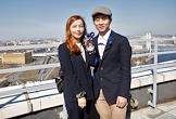 Шестикратный олимпийский чемпион по шорт-треку Виктор Ан (справа) с супругой Нари у жилого комплекса "Князь Александр Невский" от компании "Росстройинвест", где они получили квартиру.