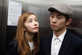 Шестикратный олимпийский чемпион по шорт-треку Виктор Ан (справа) с супругой Нари в лифте жилого комплекса "Князь Александр Невский" от компании "Росстройинвест", где они получили квартиру.