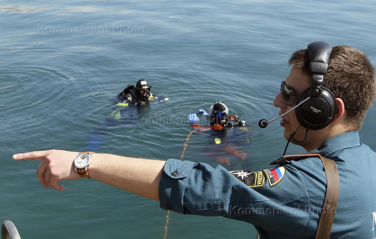 Rescuers of the Ministry of Emergency Situations are during the inspection of littoral sea zone nearby Alushta where people have rest . More than 500 beaches and places, where people have rest, will be inspected by the beginning of the holiday season in Crimea.