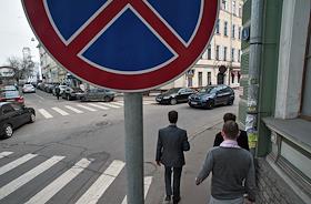Жанровая фотография. Дорожный знак "Остановка запрещена". Пешеходная зебра.