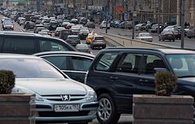 Плотный поток автомобилей на улице города.