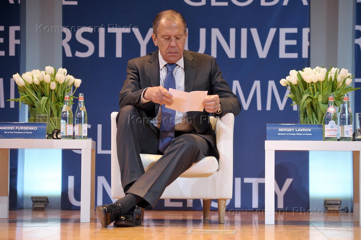 Министр иностранных дел России Сергей Лавров во время открытия Глобального университетского форума, в Московском государственном институте международных отношений (МГИМО).