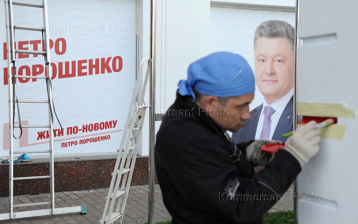 Политическая ситуация на Украине. Виды Днепропетровска. Билборд кандидата в президенты Украины Петра Порошенко.