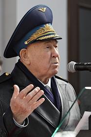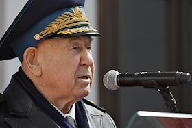 Летчик-космонавт Алексей Леонов на церемонии отправления в первый рейс фирменного поезда № 9/10 сообщением "Москва – Брянск" с Киевского вокзала.