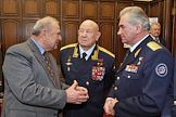 Летчик-космонавт Алексей Леонов (справа) на церемонии отправления в первый рейс фирменного поезда № 9/10 сообщением "Москва – Брянск" с Киевского вокзала.