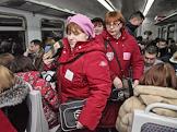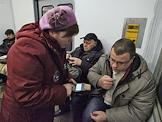 Жанровая фотография. Электричка из Балашихи в Москву. Контролеры во время проверки билетов у пассажиров в вагоне электрички.