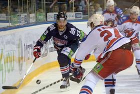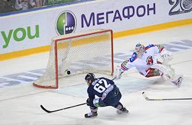 Континентальная хоккейная лига (КХЛ). Кубок Гагарина. Матч финальной серии между командами "Металлург" (Магнитогорск) и "Лев" (Прага). Игрок команды "Металлург" Денис Платонов во время матча.