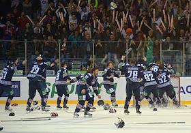 Континентальная хоккейная лига (КХЛ). Кубок Гагарина. Матч финальной серии между командами "Металлург" (Магнитогорск) и "Лев" (Прага).