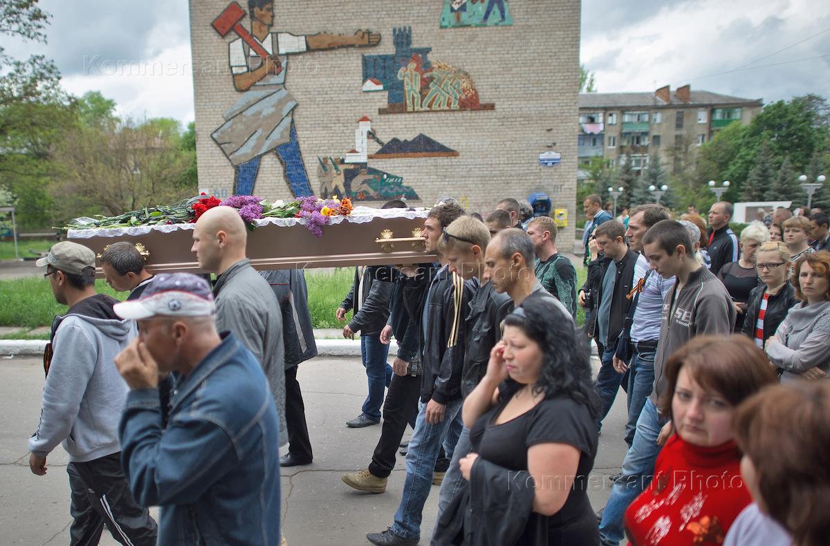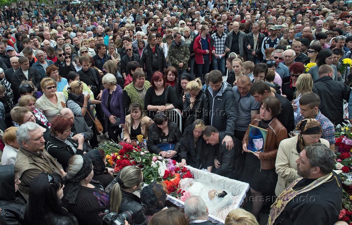 Политическая ситуация на Украине. Краматорск. Славянск. Во время похорон медсестры Юлии Изотовой, которая погибла во время штурма города украинскими военными.