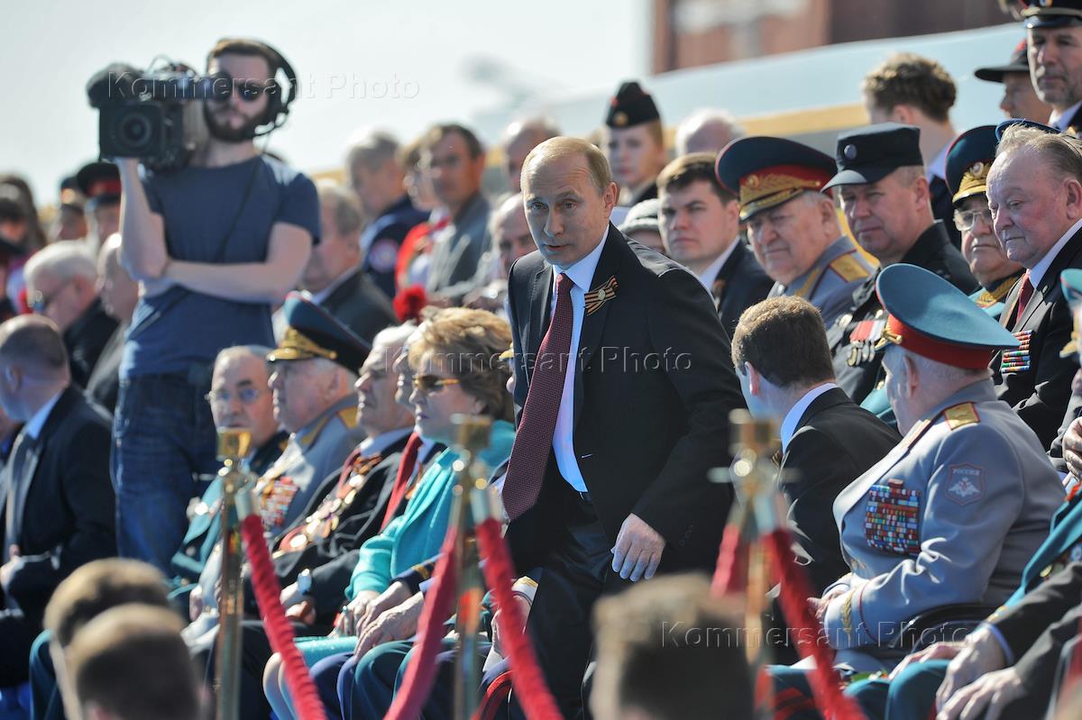 Военный парад, посвященный 69-й годовщине Победы в Великой Отечественной войне, прошел на Красной площади. Председатель правительства России Дмитрий Медведев (слева) и президент России Владимир Путин (справа) перед началом парада.