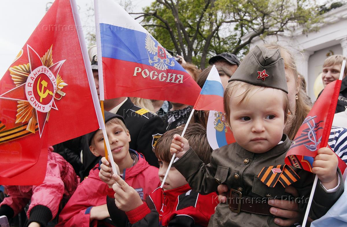 Festive events, devoted to the 69th anniversary of the victory in the Great Patriotic War, held in Sevastopol. Spectators are during the military parade.