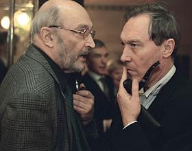 Актер и режиссер Михаил Козаков (справа) и актер Олег Янковский (слева) на праздничном приеме, посвященном 50-летию альтиста и дирижера Юрия Башмета. Прием состоялся в особняке Рябушинского.