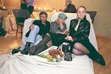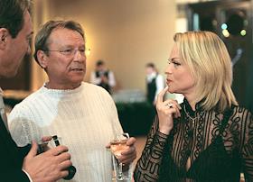 Актеры: Олег Янковский (слева), Сергей Шакуров (в центре) и певица Лариса Долина (справа) на праздничном приеме, посвященном 50-летию альтиста и дирижера Юрия Башмета. Прием состоялся в особняке Рябушинского.