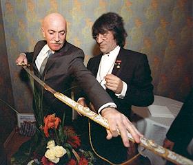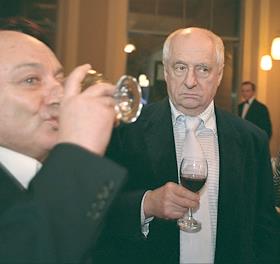 Генеральный директор пивоваренной компании "Балтика" Таймураз Боллоев (слева) на праздничном приеме, посвященном 50-летию альтиста и дирижера Юрия Башмета (справа). Прием состоялся в особняке Рябушинского.