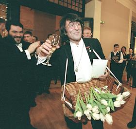 Праздничный прием, посвященный 50-летию альтиста и дирижера Юрия Башмета. Прием состоялся в особняке Рябушинского. Белый тюльпан в дар музыканту.