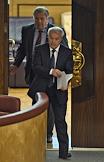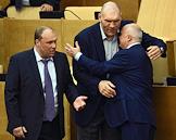 Заместитель председателя комитета Государственной думы (ГД) России по труду, социальной политике и делам ветеранов Михаил Моисеев (слева) и член комитета ГД России по конституционному законодательству и государственному строительству Олег Лебедев (справа) на пленарном заседании Госдумы России.